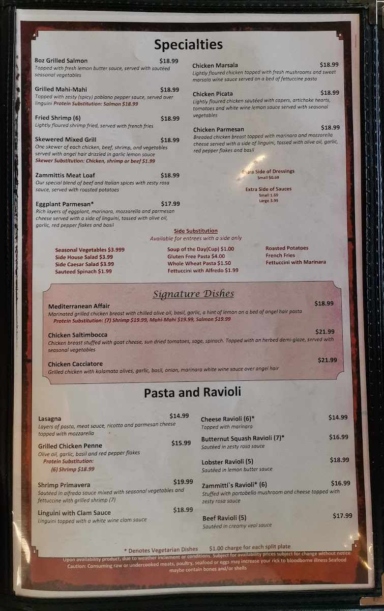 Zammitti's promises a cozy atmosphere and superb service, making it a perfect spot for memorable dining moments.